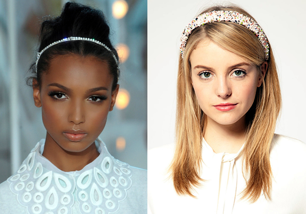 À gauche : défilé Louis Vuitton Printemps/Été 2012 – À droite : Pearl And Ivy – Bandeau à sequins multicolores 18,17€ via Asos