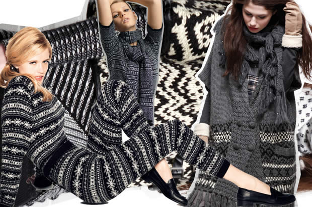 Définitivement sportswear, le jacquard cet hiver se déclinera évidemment en pull, bonnet, écharpe, gilet et robe pull. Mais la pièce qui mérite la plus grande attention est sans aucun doute la combinaison/pyjama all over jacquard. Du grand art. Vue chez Etam et chez H&M, je me demande si je pourrais vraiment sortir de chez moi en ayant l’impression d’avoir enfilé mon pilou-pilou pour nuits froides.