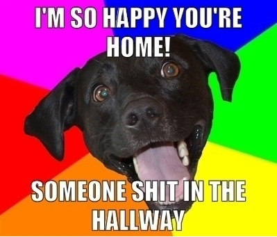 JE SUIS TELLEMENT CONTENT QUE TU SOIS RENTRÉ ! QUELQU'UN A FAIT CACA DANS LE COULOIR !