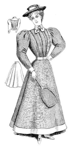 Fin des années 1890, ou la découverte du sport (ici, la raquette) mais pas de la praticité vestimentaire.