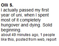 "J'ai eu ma première année de fac alors que j'ai passé la plupart du temps à décuver et à mourir. Un bon début"