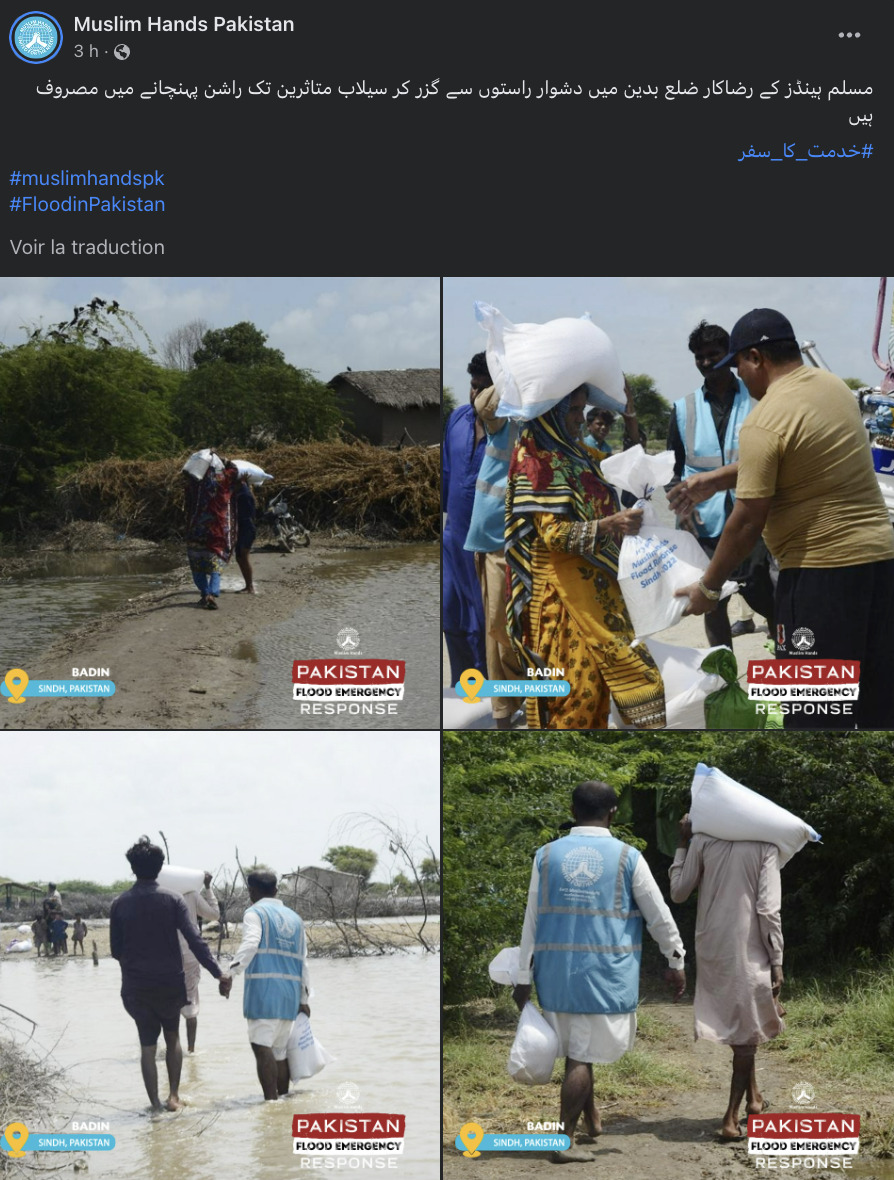 Cette association d’aide internationale travaille dans certaines des régions les plus touchées du Pakistan, notamment le Balouchistan, le Sind et le sud du Pendjab. Là, elle contribue à mettre en place des camps médicaux et fournir des colis alimentaires.