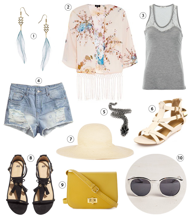 - Un kimono fleuri New Look (29,99€) avec des franges dans le dos pour le côté festivalière de Coachella