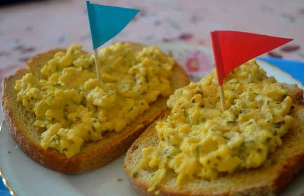 - Pendant ce temps, battez vos oeufs et versez les dans une casserole avec le reste du beurre. Allumez le feu à chaleur moyenne et mélangez sans vous arrêter jusqu’à ce que la pâte soit cuite et solide.