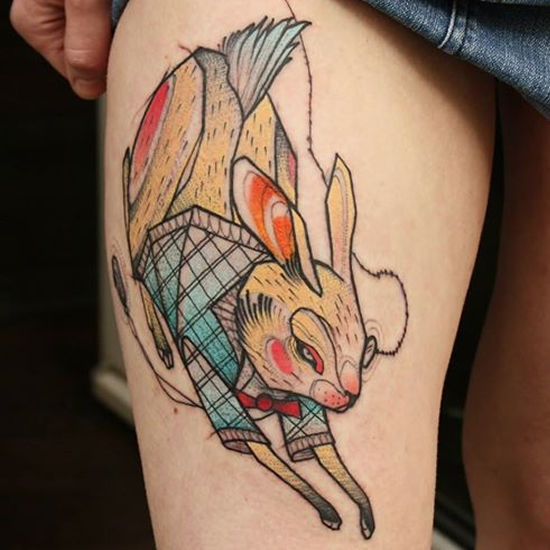 Explosion dans ta rétine en approche. Si pour toi le tatouage c’est en couleur, le travail d’Anton devrait te donner des pulsions animales. Calme tes ardeurs, il te faudra prendre un aller-retour pour Moscou pour rencontrer ce fan de Miyazaki à la grande maîtrise du rendu aquarelle. Sèche tes larmes, c’est toujours moins cher qu’un baptême de fusée.