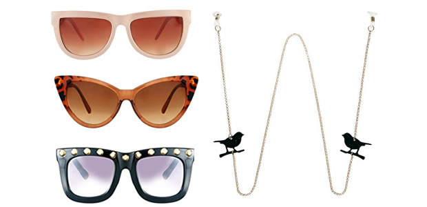 Lunettes pastel (10,60€ au lieu de 15,91€) – Lunettes yeux de chat (10,60€ au lieu de 13,26€) – Lunettes cloutées (18,56€ au lieu de 26,51€) – Chaîne pour lunettes (5,30€ au 6,63€)