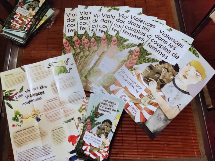 Dans le cadre de la campagne, plusieurs supports ont été développés : une affiche pour les associations, centres LGBTI+ et leurs structures partenaires afin de « rendre le sujet visible et indiquer que l’écoute est ouverte », selon la fédération. Mais aussi des cartes à glisser dans sa poche avec des numéros d’urgence et des dépliants décrivant les différents types de violences conjugales pour informer les victimes, les témoins et les personnes ayant commis des violences.