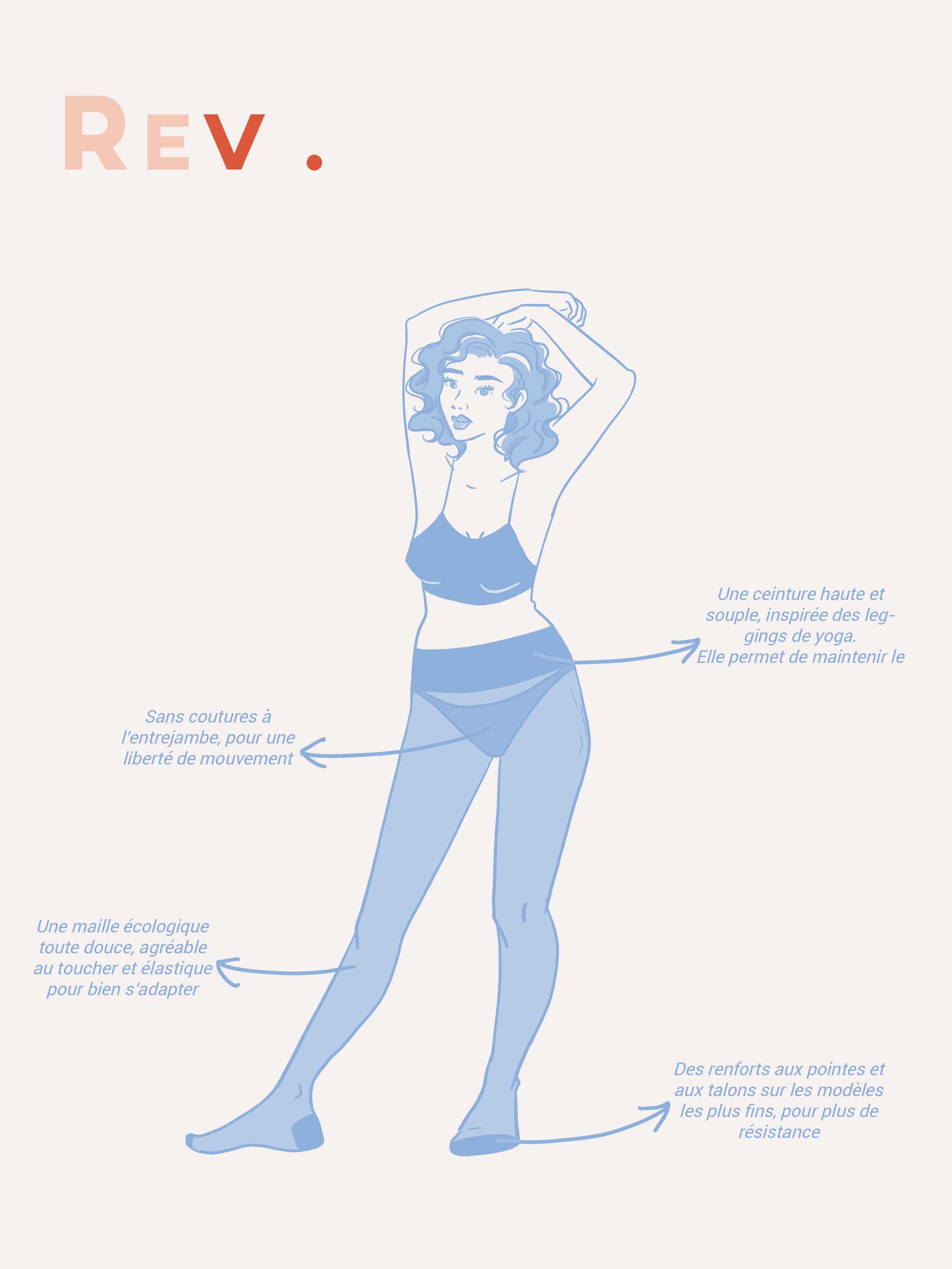 REV Society est une toute jeune marque, née en 2019 et fondée par deux jeunes femmes, Aurore Jacques et Laetitia Paput. Ayant constaté que les collants sont extrêmement polluants, de leurs procédés de fabrication à leur courte durée de vie, elles ont décidé de changer la donne.