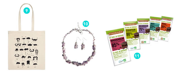 11. Cinq lots « madmoiZelle aime le chocolat équitable » offerts par Ethiquable composés de cinq tablettes de grand crus de chocolat noir équitable et bio (noir 70% Pérou Grand Cru Piura, noir 72% Haïti Grand cru Cap Haïtien, noir 75% Nicaragua Grand cru Waslala, noir 80% Equateur Grand cru Esméraldas, noir 85% Madagascar Grand cru Sambirano) et d’un un livret gourmet de dégustation.
