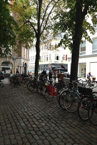 Mais Copenhague est une ville qui se parcourt à vélo. Surtout quand on n’a que quelques jours pour l’explorer, et même si on aime marcher. Bien sûr, la ville a ce qu’il faut en transports en commun, bus, métro et S-tog (train de banlieue). Et elle est aussi parfaitement aménagée pour laisser les cyclistes faire la loi. Ainsi, qu’il grêle, qu’il neige ou qu’on ait mal aux fesses, il suffit de jeter un oeil aux terrifiants amoncellements de vélo devant les magasins (ou de manquer de mourir en traversant la route) pour comprendre qu’à Copenhague, ON PREND SON VÉLO.