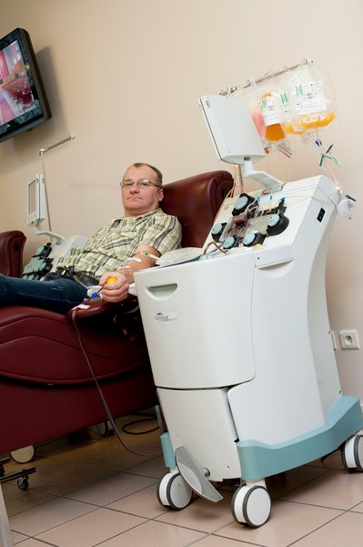 Lorsque vous donnez votre sang, on vous prélève l’intégralité des composants, qui seront ensuite séparés, car on ne transfère au patient que les composants dont il a besoin. Il est également possible de donner uniquement vos plaquettes ou uniquement votre plasma. C’est ce que l’on appelle un don en aphérèse : on ne vous prélève qu’un seul composant. Si vous donnez plasma et plaquettes simultanément, on parle de don combiné ou d’aphérèse combinée.