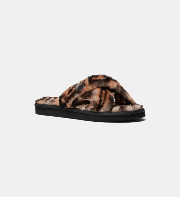 Pantoufles effet fourrure animalier, Michael Michael Kors, 32,50€ au lieu de 65€.