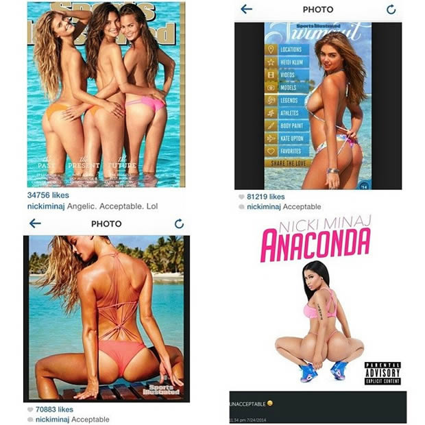 Je me souviens des critiques reçues par Nicki Minaj lors de la sortie de son single Anaconda. On lui reprochait de s’exhiber d’une façon vulgaire. Elle avait répondu que lorsque des femmes blanches posaient nues de la même manière, on ne leur en tenait pas rigueur. En réponse à ces critiques, Nicki avait même posté des photos de fesses de femmes non-noires avec la légende « acceptable » sur son compte Instagram.