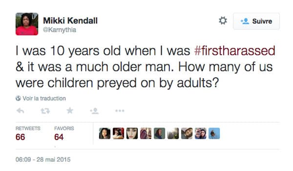 Le hashtag #FirstHarassed (la première fois où j’ai été harcelée) permet aux femmes de partager leur expérience de victime de harcèlement. A l’origine du mouvement, l’auteure et féministe américaine Mikki Kendall qui a voulu raconter la première fois où elle a subi des violences sexistes.