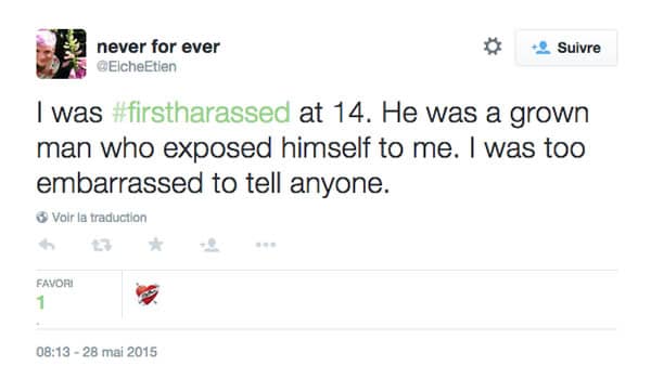 Ce hashtag montre à quel point le harcèlement peut commencer tôt, et faire partie intégrante de la vie d’une femme. Le mouvement a débuté aux États-unis et commence à toucher de plus en plus de pays : quelques témoignages de françaises victimes de harcèlement apparaissent sur Twitter.