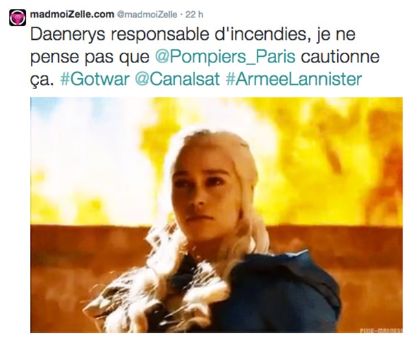 Le 4 avril 2015 – La #GotWar bat son plein, et on s’amuse à affronter nos adversaires à base de punchlines plus WTF les unes que les autres. Voici donc une sélection de nos tweets les plus menaçants.