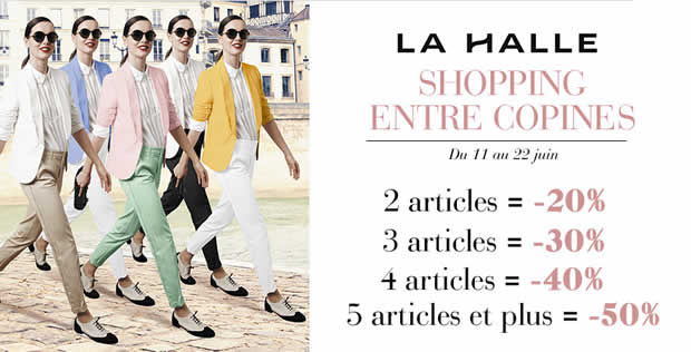 Montant de la réduction : Jusqu’à 50% sur tout le site (hors promos) Sur : www.halle.com Jusqu’au : dimanche 22 juin 2014 Livraison : gratuite à partir de 50€ d’achat