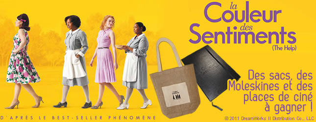 Grâce à madmoiZelle tu vas peut-être pouvoir gagner des Moleskines, des sacs en toile et des places de cinéma pour La Couleur des Sentiments (The Help). Pour cela rendez-vous par ici pour tenter sa chance (vous avez jusqu’au 24 octobre) !
