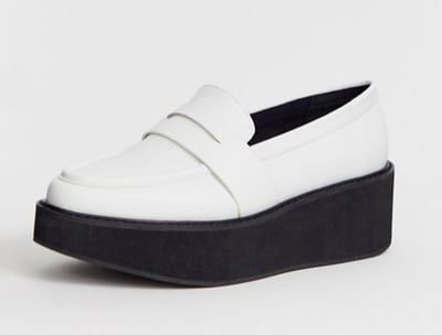 Elle porte un chemisier blanc à petites manches ballons, sous un top en crochet (eh oui, je te l’ai dis que c’était tendance ce printemps), une jupe culotte en jean et des mocassins.
