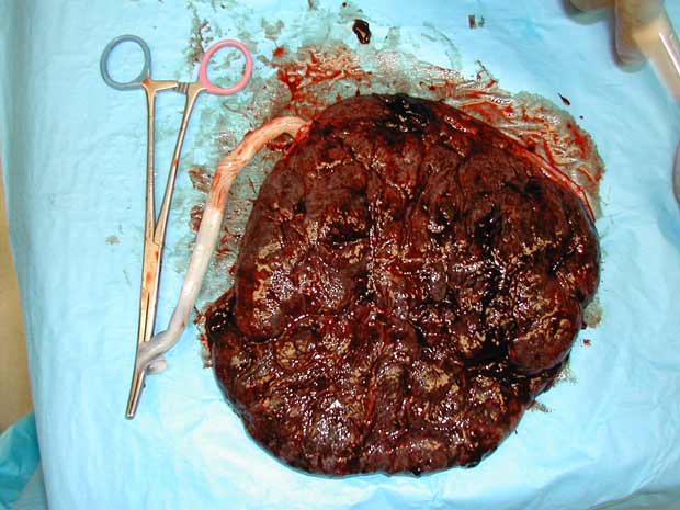 C’est tellement beau que je tiens à partager avec vous ces quelques clichés de placenta que j’ai sélectionnés afin de vous permettre de mieux visualiser la chose. Et efforcez-vous de bien visualiser, de bien vous imprégner de ce bout de viande sanguinolent qui symbolise le lien-l’amour-la-vie, c’est très important pour la suite. Donc, disais-je, un placenta (attention aux âmes sensibles), ça ressemble à ça, ou encore à ça, voire même à ça