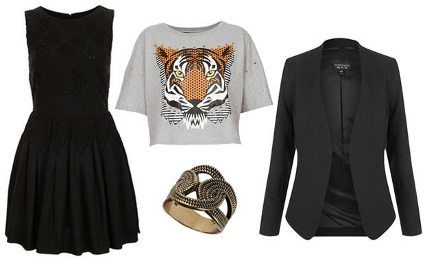 Il y a aussi quelques soldes en ce moment chez Topshop ! Je t’ai fait un copié-collé de la sélection qui se trouve dans le récapitulatif des promos d’automne : robe noire avec bustier brodé à 20€ au lieu de 72€, crop top tigre à 9€ au lieu de 32€, bague à anneaux entrelacés à 2,50€ au lieu de 5€ et veste noire à 13€ au lieu de 64€ !
