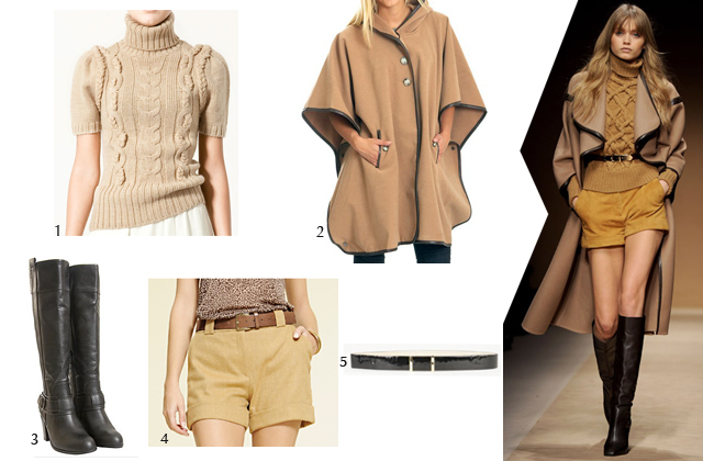 Aujourd’hui, la silhouette Ferragamo reprend les codes d’un look très nature et campagne ; cuir, maille, laine. Mais elle peut tout aussi bien être adaptée à la ville grâce à son allure chic, procurée par la finition des matières ; le cuir est verni, la maille est torsadée et le velours est côtelé. Le mini-short, avec des bottes et sous une cape longue, permet de casser le côté un peu trop bourgeoise de la bourgade.