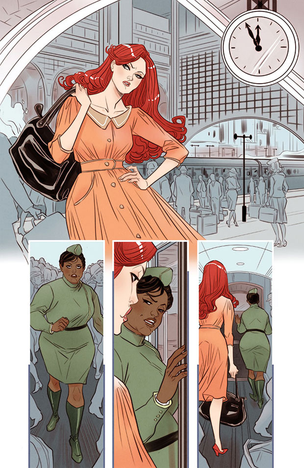 Car oui, Marguerite Sauvage ne produit pas que des illustrations de femmes élégantes à la pointe de la mode ! Depuis 2014, elle s’est lancée dans les comics, et travaille notamment sur DC Bombshells, qui se focalise sur les héroïnes femmes de l’univers DC Comics. Et qui dit domaine différent dit aussi nouvelle méthode de travail :