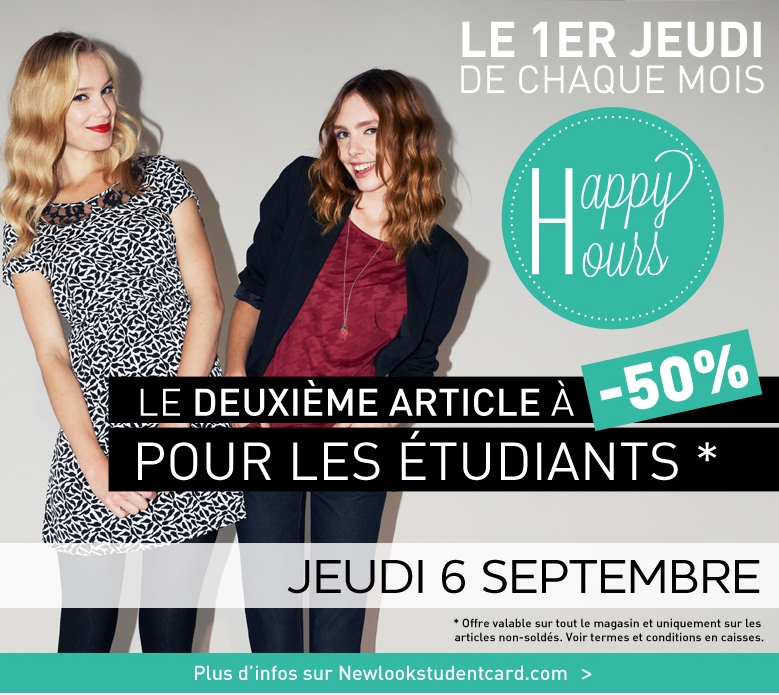 Ne soyez pas si triste de reprendre le chemin de l’école, vous allez pouvoir récupérer votre carte étudiante et profiter de tous ses avantages cachés à commencer par une grosse réduction chez New Look.