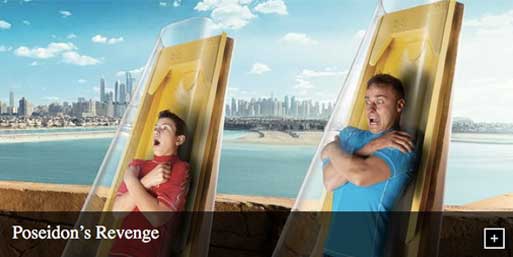 Le toboggan le plus élevé, nommé The Leap of Faith, monte à une hauteur équivalente à neuf étages. Un autre, le Poseidon’s Revenge, démarre dans une sorte de capsule fermée où le sol se dérobe sous vos pieds, pour ne pas que vous hésitiez à vous lancer.