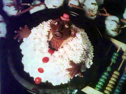 Après cette lugubre découverte sur mon passé d’enfant idiot, et après m’en être voulu à mort d’avoir eu si longtemps trouvé cette photo adorable et gustativement parlante (ne me jetez pas la pierre, il s’agit tout de même d’une boule de mousse au chocolat, recouverte de chantilly et de cerises confites !), j’ai compulsé fiévreusement l’intégralité de mes ouvrages de pâtisserie, tremblante, craignant de tomber au passage sur la recette du « Feuj à kippa » accompagné de son « Bosh en redingote de cuir », du « Bougnoule en djellaba » ou du « Niakoué en kimono » …