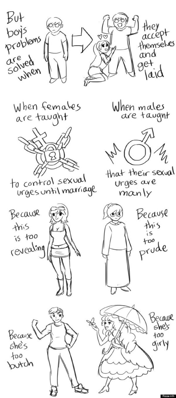 Quand nous apprenons aux femmes de résister à leurs désirs sexuels jusqu’au mariage alors qu’on apprend aux hommes que leurs désirs font d’eux des hommes.