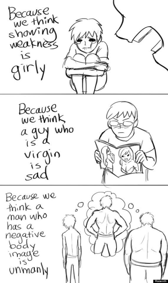 Parce que nous pensons qu’un homme qui a une mauvaise image de soi n’est pas assez masculin.