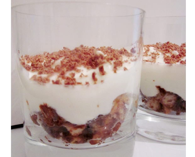 Avec ces mini pots, j’ai choisi de faire quelque chose d’un peu plus élaboré — en apparence seulement, puisque la recette est super simple à réaliser. Avec une base de mousse à la ricotta, j’ai confectionné deux verrines. La première est un peu croquante et la seconde est carrément fondante !