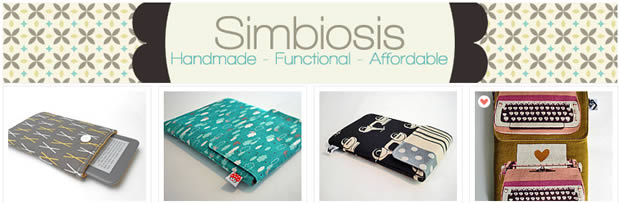 Julia propose sur sa boutique Simbiosis des housses pour tous les formats, mais aussi des trousses et des petits portes-monnaies. Les modèles sont assez classiques, mais j’aime beaucoup son choix varié de tissus, aux motifs graphiques et souvent rétro. Comptez entre 15€ (pour une housse de liseuse éléctronique) et 23€ (pour un MacBook).