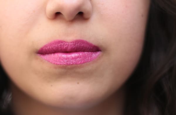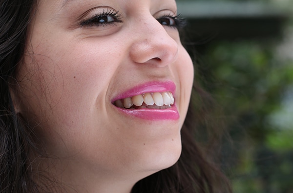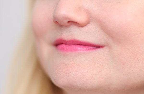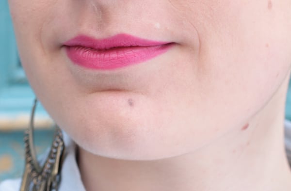 Madeleine porte le XXL Shine Gloss d’essence, dans la teinte « Popping Pink » (2,29€).