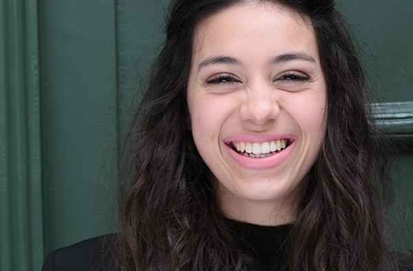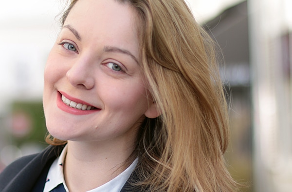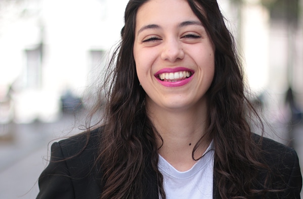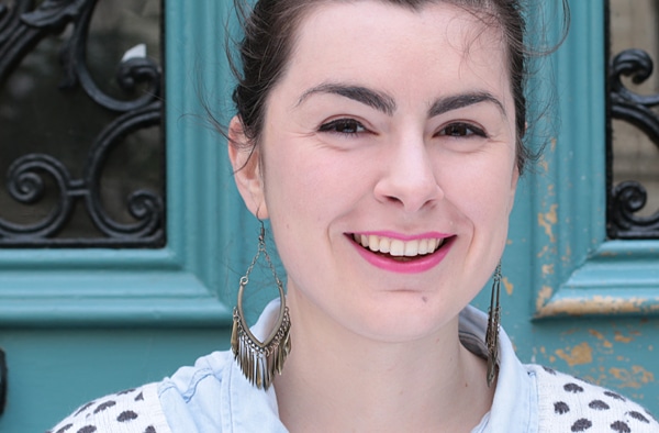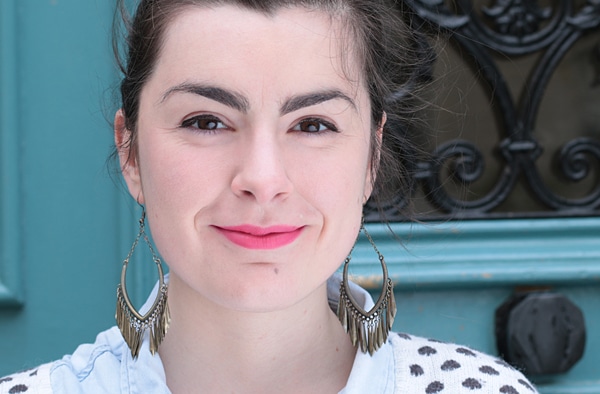Madeleine porte le rouge à lèvres de Paul & Joe Beauté, dans la teinte « Pamplemousse » (15€ le bâton de rouge + 6€ l’étui).