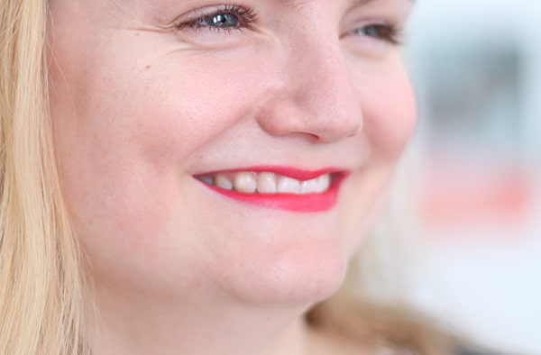 Je porte le Joli Rouge Brillant de Clarins, dans la teinte « Coral Tulip » (24,80€).