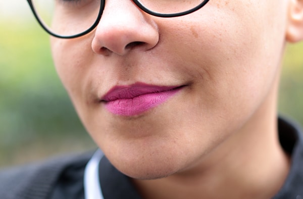 Aliénor porte le rouge à lèvres Be Legendary de Smashbox, dans la teinte « Fuchsia Flash » (22,50€).