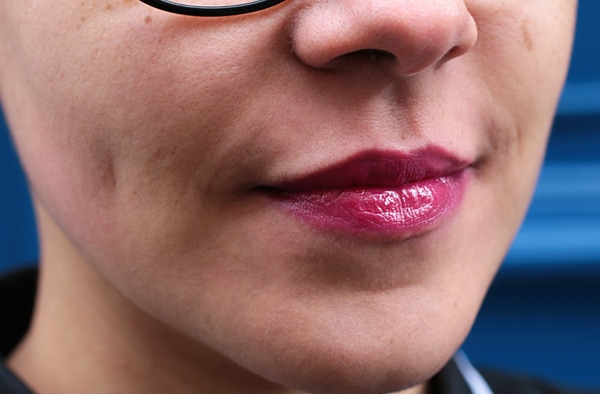 Lola porte le rouge à lèvres Velvet Rope de Lipstick Queen, dans la teinte « Private Party » (45€, en exclusivité chez Sephora).