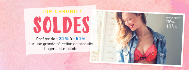Bon plan : 20% de réduction supplémentaire dès l’achat de 3 articles soldés (hors sous-vêtements)Code promo : 2ESOLD