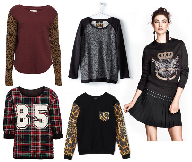 Le sweat-shirt s’immisce aussi dans la tendance grunge avec des couleurs automnales, des coupes garçonnes et des motifs rock à la sauce Vivienne Westwood ou encore inspirés du dernier défilé de Givenchy.