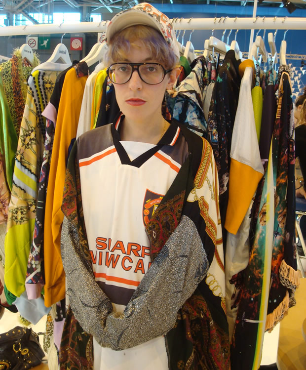 Trêve de mystères (oui je sais, c’est intenable), papiers-stylos, voici le topo et accrochez-vous c’est du lourd : cette créatrice fait, je cite, du « streetwear baroque » (rendons à Tata ce qui lui appartient, je ne peux me vanter de cette merveilleuse définition). Donc, c’est une mode de rue extravagante et confortable qui joue avec le mauvais goût. Ces créations unisexes pourraient être le fruit d’une liaison lubrique entre les déglinguées trash d’Absolutely Fabulous et le travesti le plus foireux d’un bouge barcelonais.