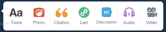 Le point d’interrogation vous renvoie vers l’aide de Tumblr, autrefois exclusivement en anglais, maintenant assez bien traduite. Une F.A.Q. qui répondra sans doutes aux questions que vous vous posez.