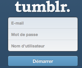 L’inscription sur Tumblr est diaboliquement simple. Il vous suffit de vous rendre sur cette page, d’entrer une adresse e-mail valide, un mot de passe et un nom d’utilisateur, qui sera l’URL de votre blog (l’étape la plus compliquée étant d’en trouver un qui ne soit pas déjà pris). Ensuite, indiquez votre âge et acceptez de vendre votre âme au Diable les conditions d’utilisation, prouvez que vous n’êtes pas un robot en validant le captcha code, cliquez sur le traditionnel mail de validation et tadam ! Vous voilà sur Tumblr !