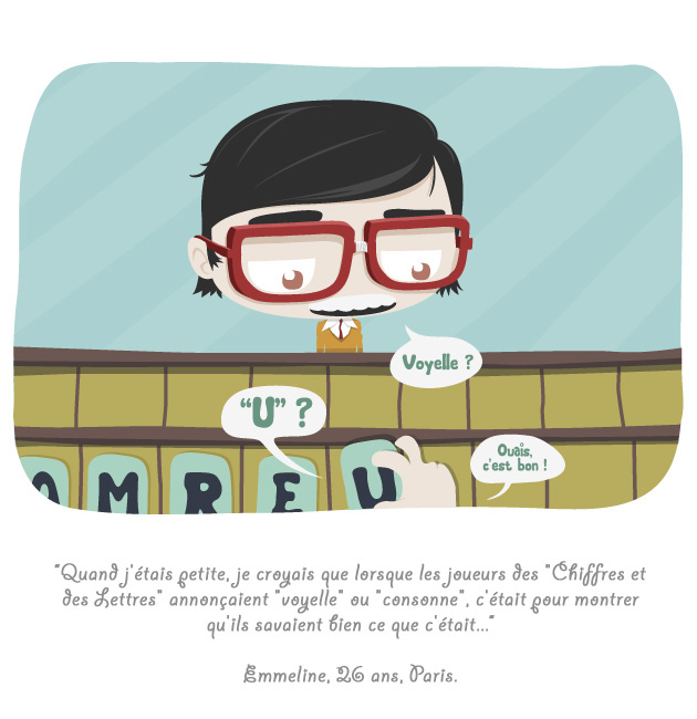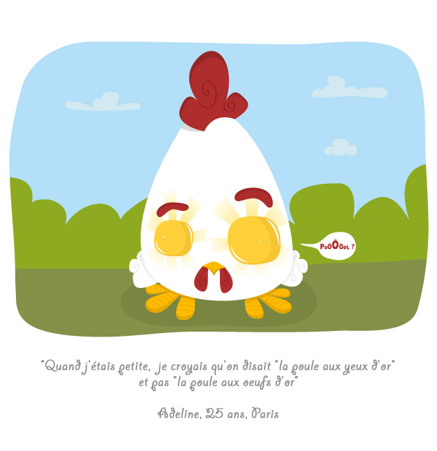 Moi, quand j’étais petite, je croyais qu’un poisson pané, c’était un poisson « pas né ». Et quand mes potes disaient « eh moi, quand j’étais pas né, blablabla… » j’entendais « quand j’étais pané » et j’imaginais mes potes panés et ça me faisait flipper.