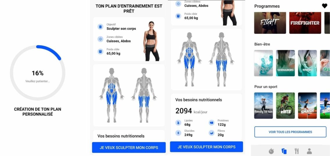 - L’application est totalement personnalisable, elle vous propose des programmes adaptés à votre niveau, vos objectifs et votre emploi du temps.